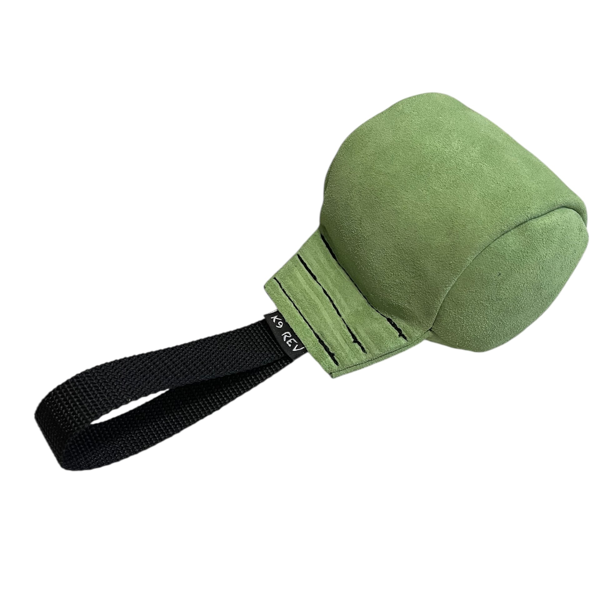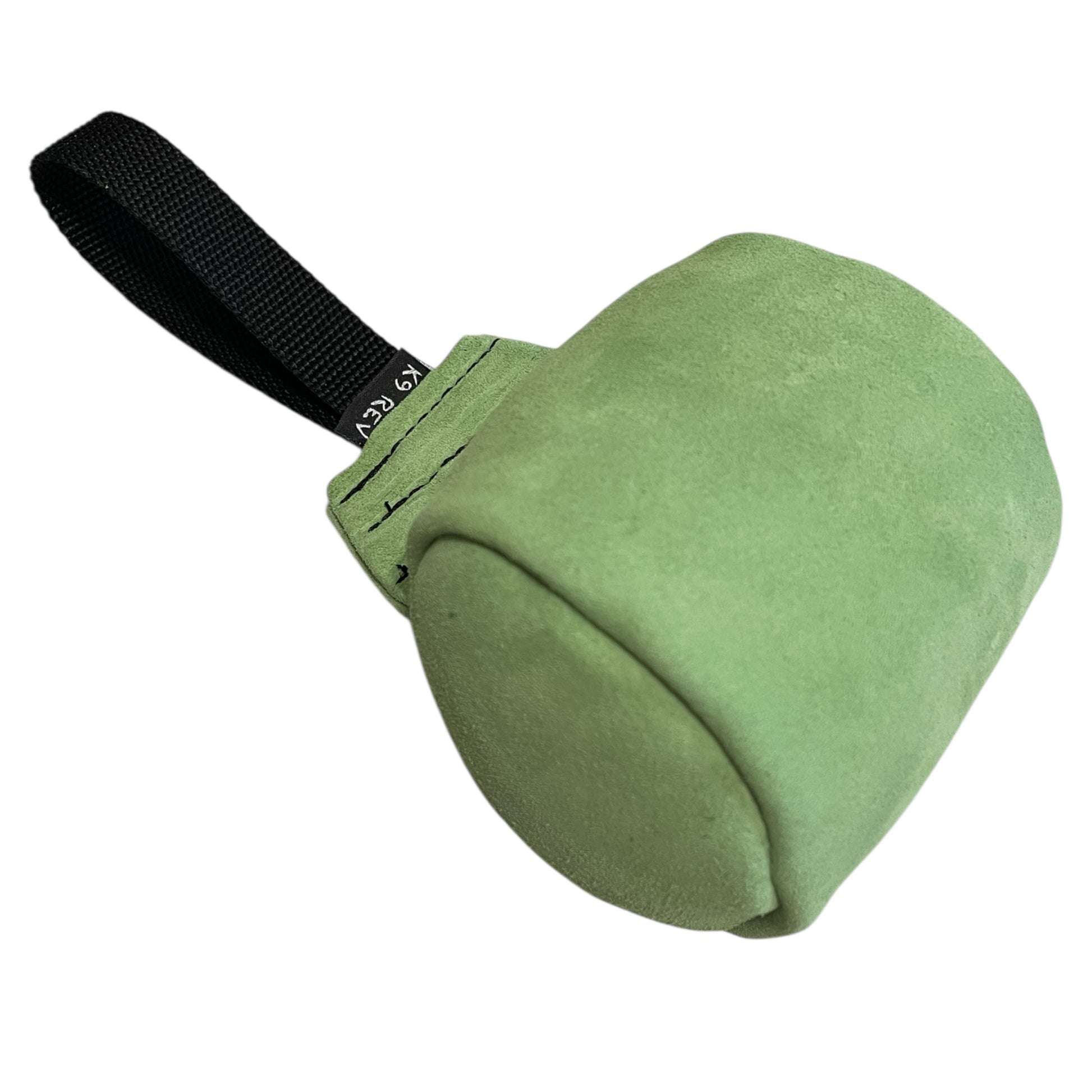 Our K9 REV Leather Reward Ball is made from high-quality suede leather. This ball is intended for use as a reward and is not designed for strong pulling or as a chew toy.